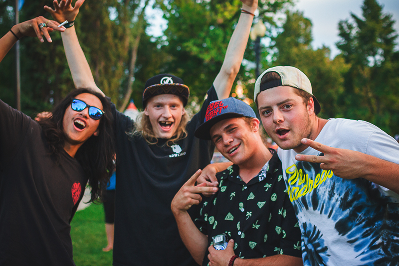(L–R) SLUG skate competitors and street thrashers Sam Illu, Lucky Stables, Todd Haskew and Bridger Lambton were thrilled to get their photo taken for the magazine. Photo: Talyn Sherer