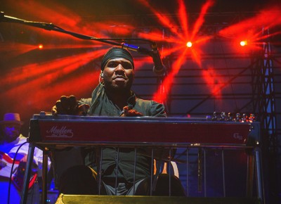 Robert Randolph of The Word glances up at the moonlit sky while performing on Thursday night. Photo: Talyn Sherer