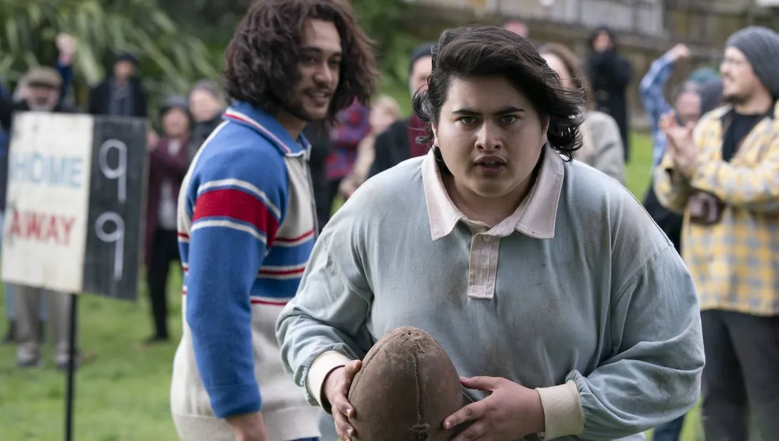 In 1981, in New Zealand, Josh Waaka (Dennison) lives with his widowed mother, Shirley (Minnie Driver, Good Will Hunting) and older brother Jamie (James Rolleston, The Dark Horse) in Dunedin, where Josh attends St Gilbert’s School for Men, a school that lives and dies by its rugby program. Josh’s weight and his Māori heritage make him an easy target for the predominantly white jocks at the school. Despite his lack of interest in the sport, rugby is in his blood. Josh’s father excelled at the sport and Jamie was a star player until he suffered a career-ending leg injury. A controversial tour of the South African rugby team, the Springboks, stirs up anti-apartheid protests and draws parallels to New Zealanders who see the class system in South Africa as a mirror of the separation between white Kiwis and the indigenous Māori people. Josh’s only real friend is a Samoan girl named Grace (Jada Fa’atui), who is pulled into the world of activism by her friend Samantha (Erana James, The Wilds), and tries to pull Josh right along with her. As Grace joins the marches, Josh explains that he’s “more of a sitter,” though he becomes increasingly involved. Meanwhile, he’s encouraged by a teacher, Brother Madigan (Rhys Darby, Jumanji: Welcome to the Jungle) to join the burgeoning drama club, where Josh discovers a natural talent that stirs something inside him. The family’s livelihood is built on their rugby legacy, however, and with nationally renowned player Jamie pulled in as assistant to coach the team, Josh is forced by his mother to join up, and the authoritarian Principal Slane (Mark Mitchinson, The Hobbit) makes it clear that participating in protests against the Springbok tour is strictly forbidden. Caught between family loyalty, the quest to fit in and the possibility of finally finding himself, Josh must decide whether to take a stand or spend his life sitting.