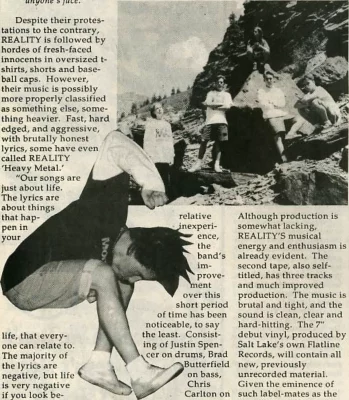 Whatever their philosophy, Reality is definitely an up n coming phenomenon on the Salt Lake scene. If you haven’t caught them yet, you owe yourself the favor. Don’t be put pff by the “straight edge” thing, Reality is accessible to everyone who likes straight ahead, hard-driving rock. Catch ’em when you can.